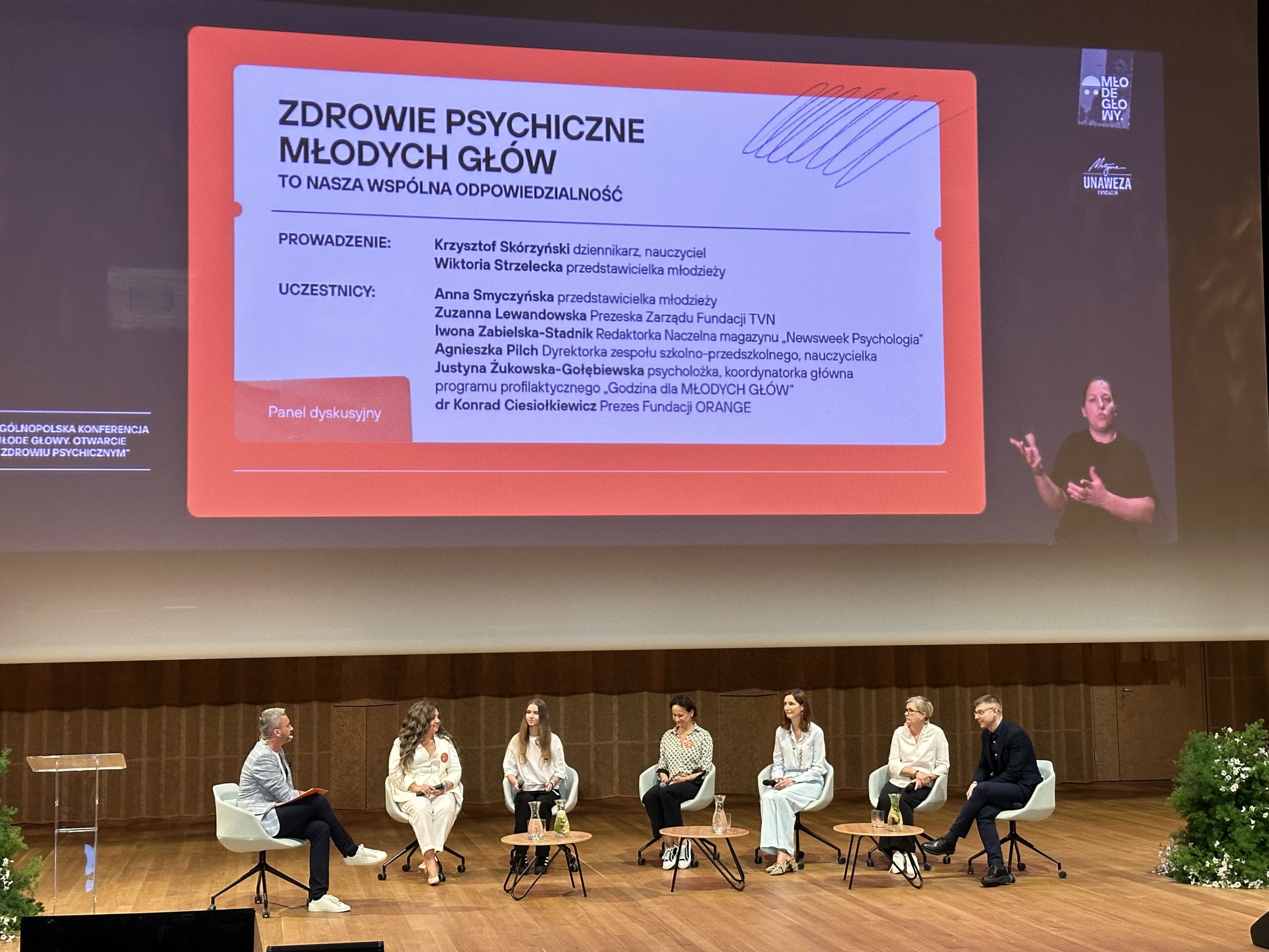 W piątek, 7 czerwca 2024 r. odbyła się Ogólnopolska Konferencja „MŁODY GŁOWY. Otwarcie o zdrowiu psychicznym”, mówiąca m.in. o poczuciu własnej wartości oraz sprawczości wśród młodych ludzi. Wydarzenie prowadzili: Martyna Wojciechowska i Kacper Zembrzucki – tiktoker, student biotechnologii. Panele dyskusyjne z ekspertami: Krzysztof Skórzyński i Magdalena Rigamonti. Nie zabrakowało także prelegentów, którzy podczas Konferencji zaprezentowali cenne treści: Monika Horna-Cieślak, Jan Gawroński, Magdalena Bigaj, Joanna Flis, Justyna Żukowska-Gołębiewska oraz Michał Kocianowski. Nad organizacją czuwali wolontariusze z XIII LO im. Lisa Kuli w Warszawie.